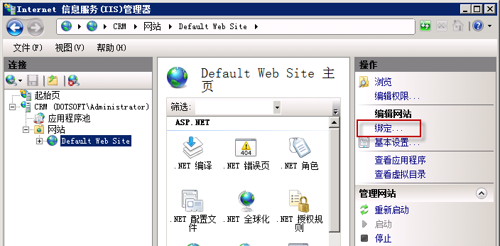 點擊網站下的站點名稱,點擊右則的綁定